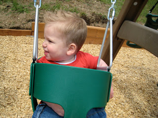 Jason and Christy got a new swingset. It was so fun!! Here's Hendrix trying out the swing